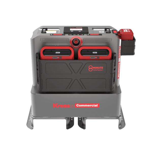 Este cargador CyberSytem DC-DC de 8 minutos proporciona la energía necesaria para cargar cualquier Kress 60 V o Kress 60 V CyberPack durante todo el día.